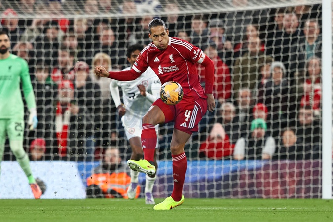 Virgil van Dijk of Liverpool clears the ball away from his defensive half during the Emirates FA Cup Third Round match Liverpool vs Barnsley at Anfield, Liverpool, United Kingdom, 12th January 2026, Credit:Ae Cosgrove/News Images / Avalon