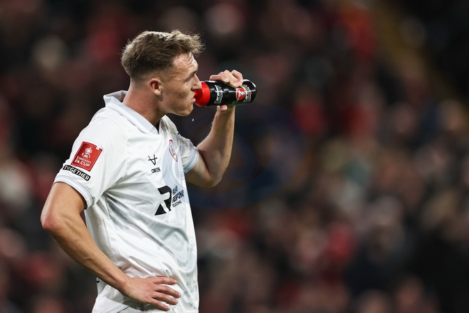 Jack Shepherd of Barnsley takes a drink during a break in the Emirates FA Cup Third Round match Liverpool vs Barnsley at Anfield, Liverpool, United Kingdom, 12th January 2026, Credit:Ae Cosgrove/News Images / Avalon