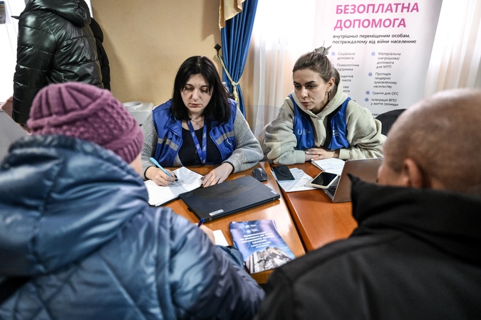 Staff members consult evacuees from frontline communities at a transit center that began operating on November 25, 2025, Zaporizhzhia, Ukraine, on January 5, 2026. The facility functions as a one-stop shop, where evacuees can process documents, open bank accounts, and receive financial, humanitarian, psychological, and legal assistance. Evacuees are able to stay at the center for three to seven days before being relocated to temporary housing in the regional center or to safer parts of Ukraine. The center has already assisted around 1,500 people, Credit:Dmytro Smolienko / Avalon