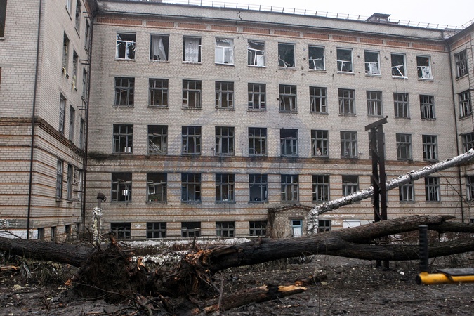 A Russian drone attack leaves a tree fallen on the grounds of a vocational education institution in Dnipro, Ukraine, on January 7, 2026, Credit:Mykola Miakshykov / Avalon
