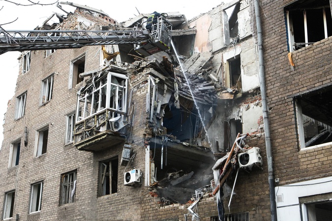 Firefighters extinguish smoldering hotspots amid debris of a multi-storey residential building partially destroyed as a result of a Russian missile attack in Kryvyi Rih, Ukraine, on January 9, 2026, Credit:Mykola Miakshykov / Avalon