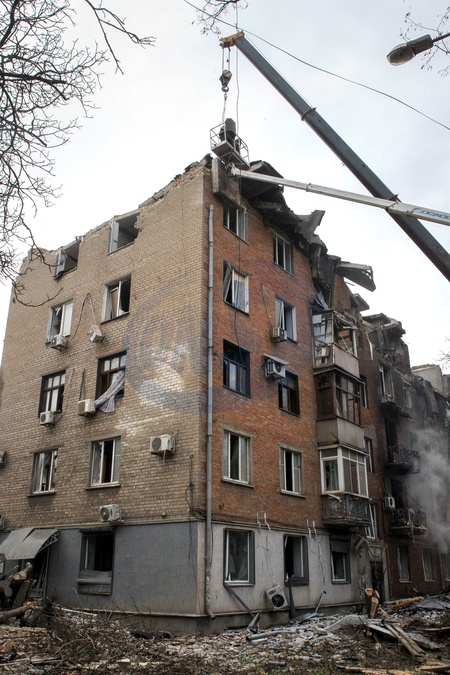 A multi-storey residential building partially destroyed as a result of a Russian missile strike is seen in Kryvyi Rih, Ukraine, on January 9, 2026, Credit:Mykola Miakshykov / Avalon