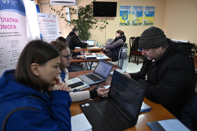 Staff members consult evacuees from frontline communities at a transit center that began operating on November 25, 2025, Zaporizhzhia, Ukraine, on January 5, 2026. The facility functions as a one-stop shop, where evacuees can process documents, open bank accounts, and receive financial, humanitarian, psychological, and legal assistance. Evacuees are able to stay at the center for three to seven days before being relocated to temporary housing in the regional center or to safer parts of Ukraine. The center has already assisted around 1,500 people, Credit:Dmytro Smolienko / Avalon