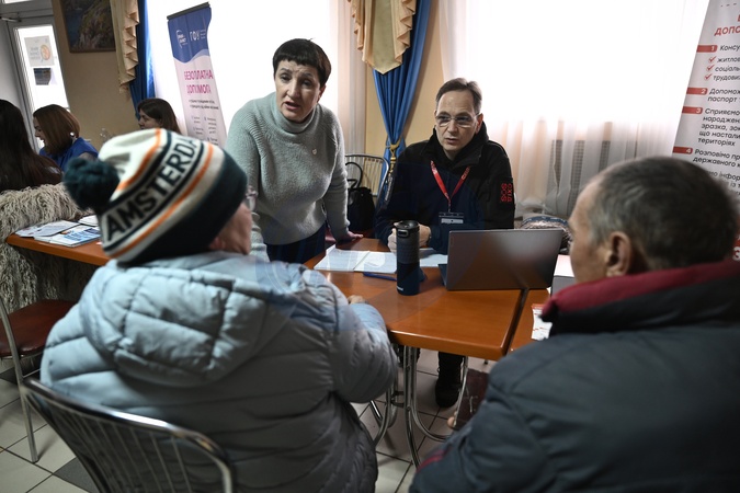 Staff members consult evacuees from frontline communities at a transit center that began operating on November 25, 2025, Zaporizhzhia, Ukraine, on January 5, 2026. The facility functions as a one-stop shop, where evacuees can process documents, open bank accounts, and receive financial, humanitarian, psychological, and legal assistance. Evacuees are able to stay at the center for three to seven days before being relocated to temporary housing in the regional center or to safer parts of Ukraine. The center has already assisted around 1,500 people, Credit:Dmytro Smolienko / Avalon