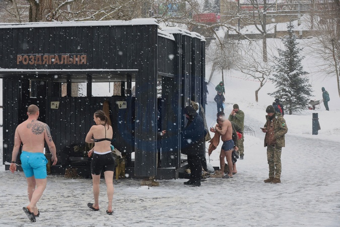 People take part in the Epiphany celebration at Sarzhyn Yar in Kharkiv, Ukraine, on January 6, 2026, Credit:Viacheslav Madiievskyi / Avalon