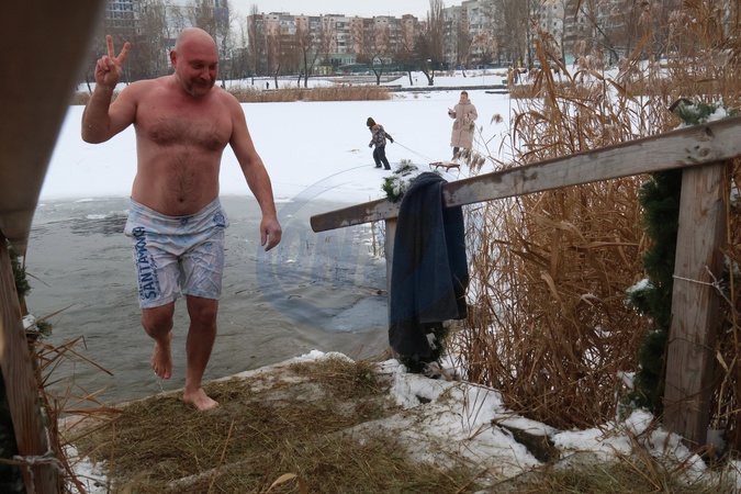 Epiphany celebration at Yordanske Lake in Kyiv