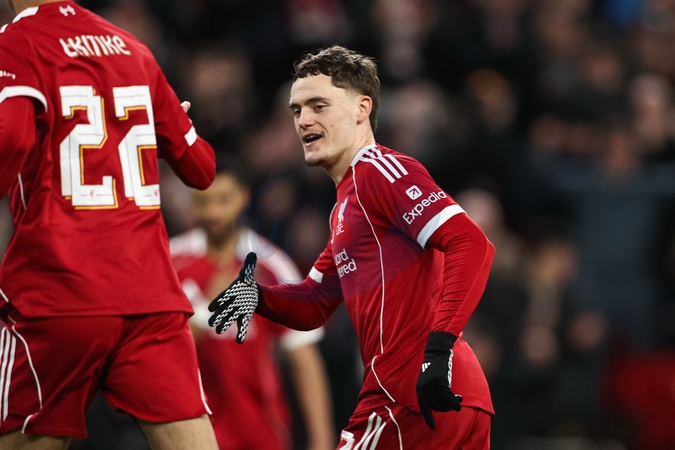 Florian Wirtz of Liverpool celebrates his goal to make it 3-1 during the Emirates FA Cup Third Round match Liverpool vs Barnsley at Anfield, Liverpool, United Kingdom, 12th January 2026, Credit:Ae Cosgrove/News Images / Avalon