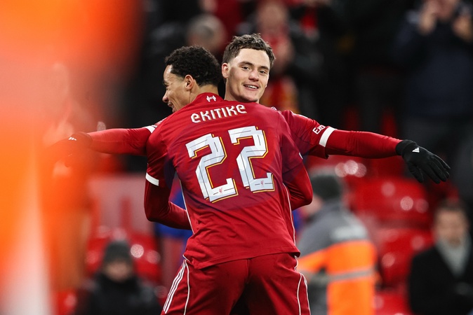 Hugo Ekitike of Liverpool celebrates his goal to make it 4-1 during the Emirates FA Cup Third Round match Liverpool vs Barnsley at Anfield, Liverpool, United Kingdom, 12th January 2026, Credit:Ae Cosgrove/News Images / Avalon
