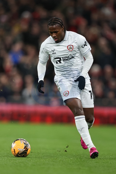 Reyes Cleary of Barnsley with the ball during the Emirates FA Cup Third Round match Liverpool vs Barnsley at Anfield, Liverpool, United Kingdom, 12th January 2026, Credit:Ae Cosgrove/News Images / Avalon