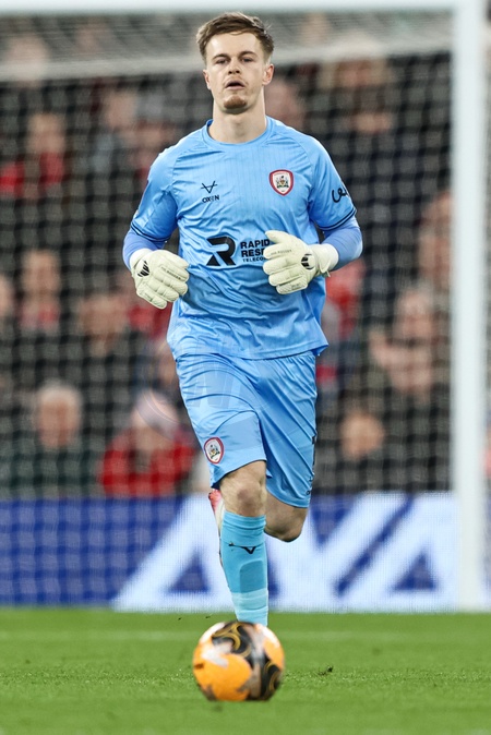 Barnsley goalkeeper Murphy Cooper with the ball, for a foul in his defensive half during the Emirates FA Cup Third Round match Liverpool vs Barnsley at Anfield, Liverpool, United Kingdom, 12th January 2026, Credit:Ae Cosgrove/News Images / Avalon
