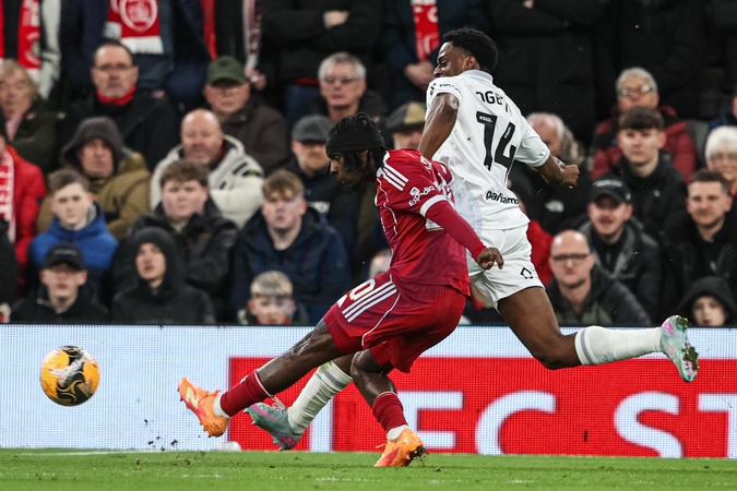 Jeremie Frimpong of Liverpool scores to make it 2-0 during the Emirates FA Cup Third Round match Liverpool vs Barnsley at Anfield, Liverpool, United Kingdom, 12th January 2026, Credit:Ae Cosgrove/News Images / Avalon