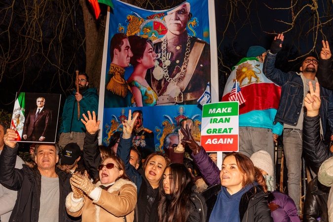 Iranian Embassy, London, UK. 12th January 2026.Activists and members of the Iranian community in London, continue to gather in front of the Iranian Embassy in support of the protests in Iran and against the Islamic Republic and Ayatollah. The protesters call for a regime change in Iran, and reinstatement of the exiled Crown Prince Reza Pahlavi.Internet services and phone lines in Iran were cut 4 days ago, with reports of mass killings and arrests causing concern., Credit:Photo by Amanda Rose / Avalon