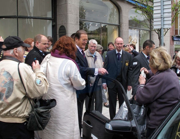 Roger Moore podpisuje swoje ksiazki w Sztokholmie, Szwecja