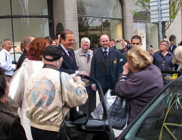 Roger Moore podpisuje swoje ksiazki w Sztokholmie, Szwecja