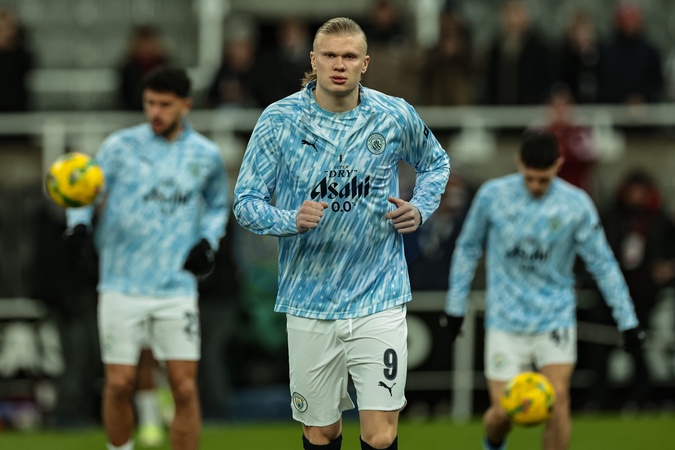 Erling Haaland of Manchester City in the pregame warmup session during the Carabao Cup Semi-finals First Leg Newcastle United vs Manchester City at St. James's Park, Newcastle, United Kingdom, 13th January 2026, Credit:Mark Cosgrove/News Images / Avalon