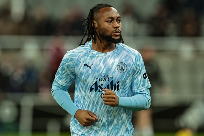 Antonie Semenyo of Manchester City in the pregame warmup session during the Carabao Cup Semi-finals First Leg Newcastle United vs Manchester City at St. James's Park, Newcastle, United Kingdom, 13th January 2026, Credit:Mark Cosgrove/News Images / Avalon