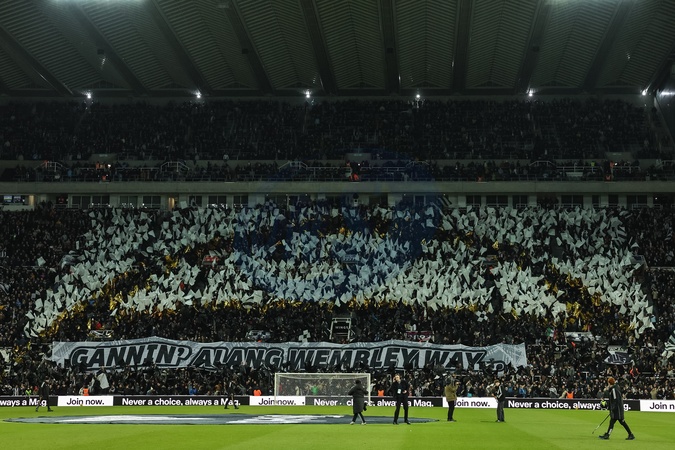 Newcastle Unites fans wave flags during the Carabao Cup Semi-finals First Leg Newcastle United vs Manchester City at St. James's Park, Newcastle, United Kingdom, 13th January 2026, Credit:Mark Cosgrove/News Images / Avalon