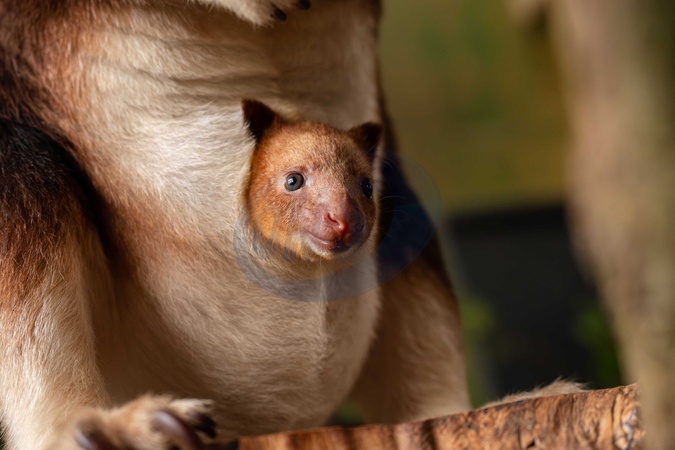 Tree kangaroo joey emerges from his mum's pouch at Chester Zoo