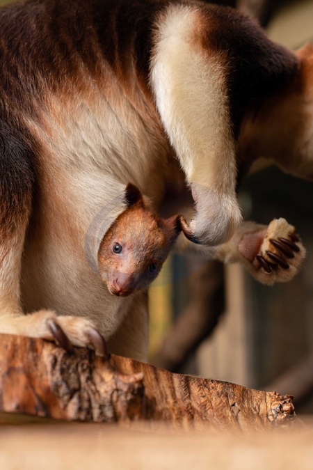 Tree kangaroo joey emerges from his mum's pouch at Chester Zoo