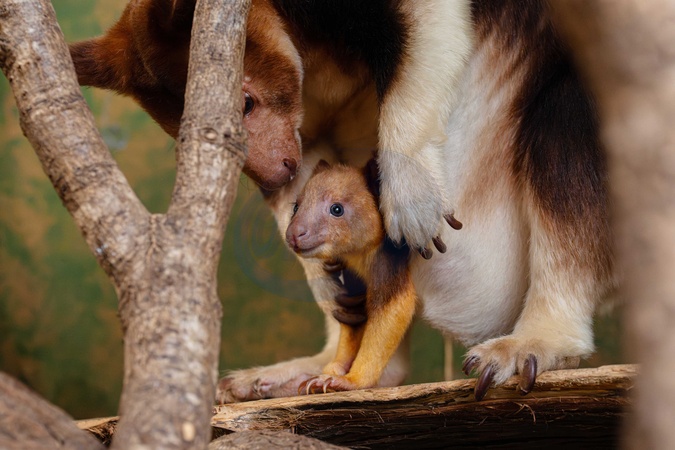 Tree kangaroo joey emerges from his mum's pouch at Chester Zoo
