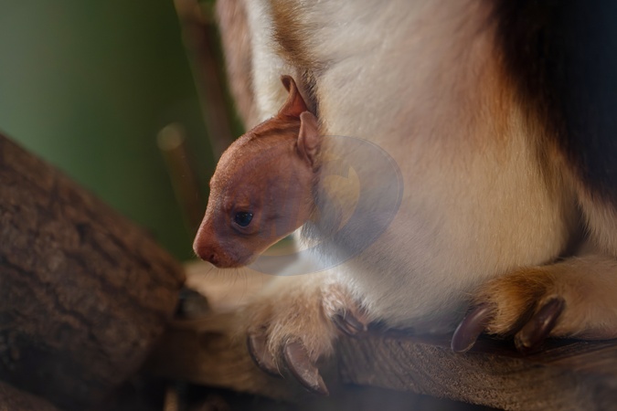 Tree kangaroo joey emerges from his mum's pouch at Chester Zoo