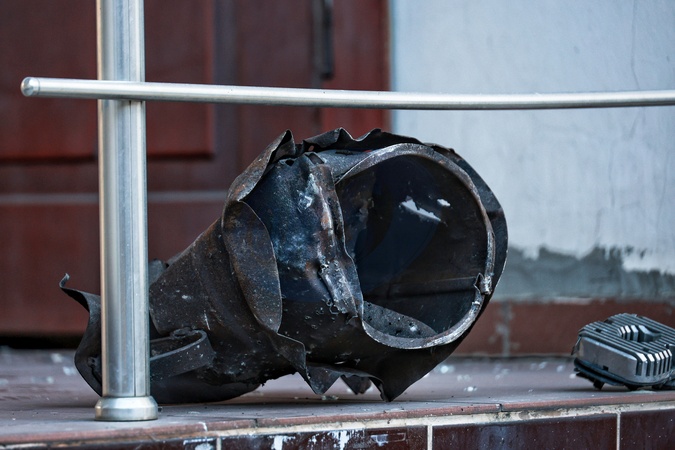 Fragments of a Russian drone lie outside an apartment block damaged by an attack, Odesa, Ukraine, January 13, 2026., Credit:Nina Liashonok / Avalon
