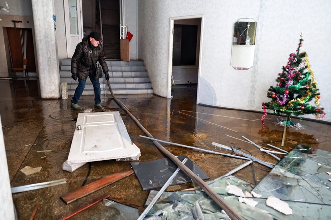 A man leaves a building flooded due to a Russian drone attack, Odesa, Ukraine, January 13, 2026., Credit:Nina Liashonok / Avalon