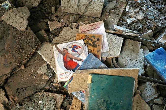 Books lie among the debris on the floor in a fitness centre damaged by a Russian drone attack, Odesa, Ukraine, January 13, 2026., Credit:Nina Liashonok / Avalon