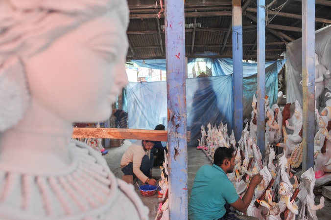 Chattogram, Bangladesh- Idol artists remain busy painting idols of Goddess Saraswati as preparations intensify ahead of Saraswati Puja, which will be celebrated across Bangladesh on 23 January., Credit:Md Rafayat Haque Khan / Avalon