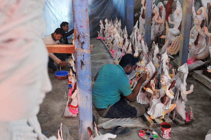 Chattogram, Bangladesh- Idol artists remain busy painting idols of Goddess Saraswati as preparations intensify ahead of Saraswati Puja, which will be celebrated across Bangladesh on 23 January., Credit:Md Rafayat Haque Khan / Avalon