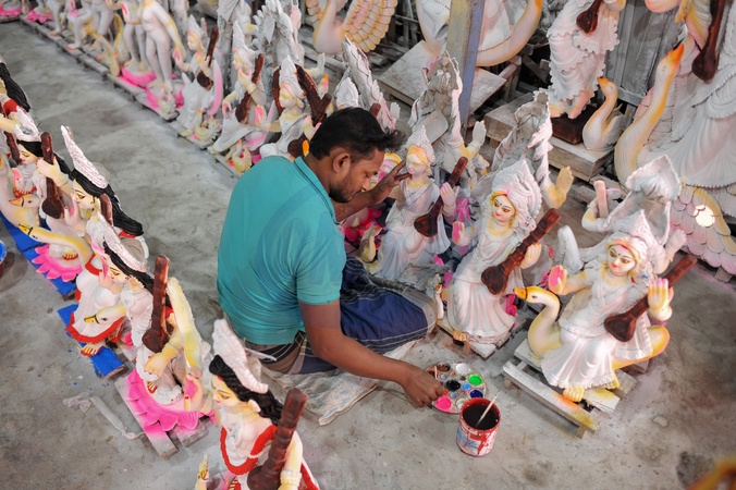 Chattogram, Bangladesh- Idol artists remain busy painting idols of Goddess Saraswati as preparations intensify ahead of Saraswati Puja, which will be celebrated across Bangladesh on 23 January., Credit:Md Rafayat Haque Khan / Avalon