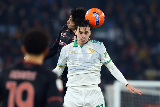 Stadio Olimpico, 2025-26 Coppa Italia round of 16, Roma-Turin, pictured is a header by Niccolo' Pisilli . Rome, Italy 13 January 2026, Credit:Federico Proietti Sync / Avalon