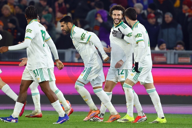 Stadio Olimpico, 2025-26 Coppa Italia round of 16 Roma-Turin, pictured Mario Hermoso celebrating after the 1-1 goal . Rome, Italy 13 January 2026, Credit:Federico Proietti Sync / Avalon