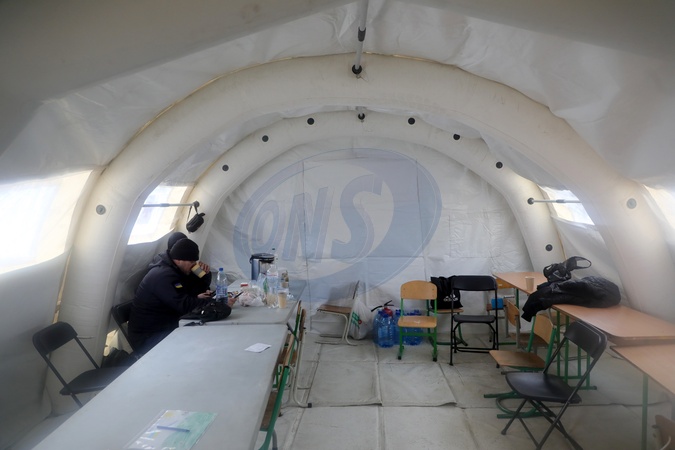Heating tent set up in Lisovyi residential area of Kyiv
