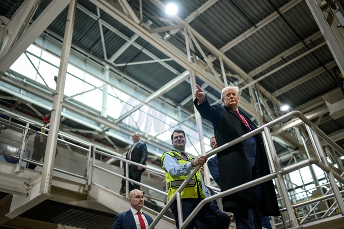 President Donald Trump tours the Ford River Rouge Complex in Dearborn, Michigan on Tuesday, January 13, 2026., Credit:Daniel Torok / Avalon