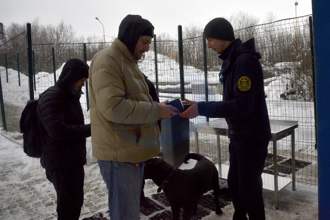 A customs officer checks a passport at the Uzhhorod-Vysne Nemecke crossing point on the Ukraine-Slovakia border, Zakarpattia region, Ukraine, January 14, 2026. The pedestrian and cyclist crossing was inaugurated following the entry into force of the Protocol between the governments of Ukraine and the Slovak Republic, signed in October 2025. The agreement aims to ease checkpoint congestion and improve citizens' mobility., Credit:Yulii Zozulia / Avalon