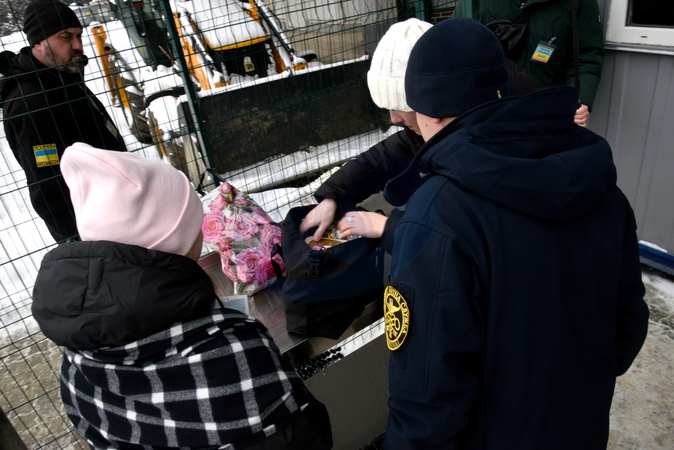 A customs officer checks the women's luggage at the Uzhhorod-Vysne Nemecke crossing point on the Ukraine-Slovakia border, Zakarpattia region, Ukraine, January 14, 2026. The pedestrian and cyclist crossing was inaugurated following the entry into force of the Protocol between the governments of Ukraine and the Slovak Republic, signed in October 2025. The agreement aims to ease checkpoint congestion and improve citizens' mobility., Credit:Yulii Zozulia / Avalon