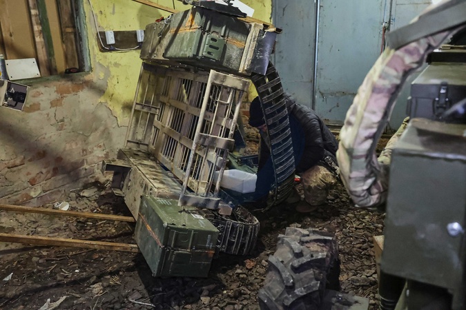 A soldier from the repair and restoration battalion of the Otaman Kost Hordiienko Motorised Brigade of the Ukrainian Armed Forces prepares an unmanned ground vehicle (UGV) for use in the Vovchansk direction, Ukraine, January 8, 2026., Credit:Viacheslav Madiievskyi / Avalon