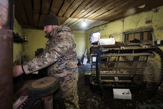 Soldier Serhii from the repair and restoration battalion of the Otaman Kost Hordiienko Motorised Brigade of the Ukrainian Armed Forces prepares an unmanned ground vehicle (UGV) for use in the Vovchansk direction, Ukraine, January 8, 2026., Credit:Viacheslav Madiievskyi / Avalon