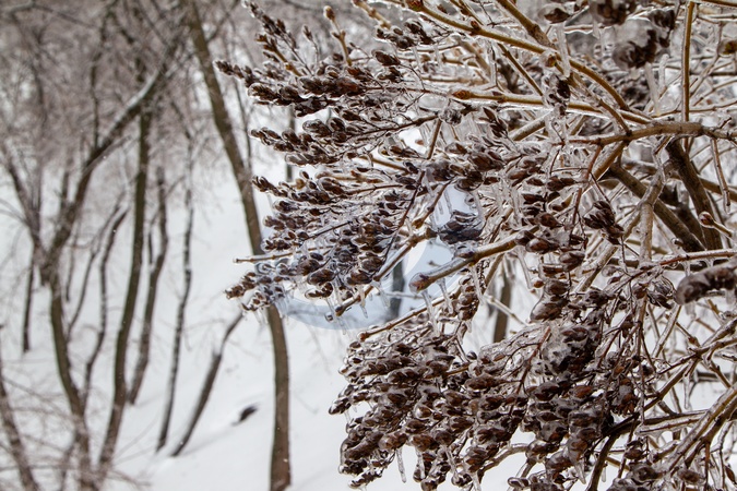 Ice covers branches after freezing rain, Kyiv, Ukraine, January 9, 2026., Credit:Kirill Chubotin / Avalon