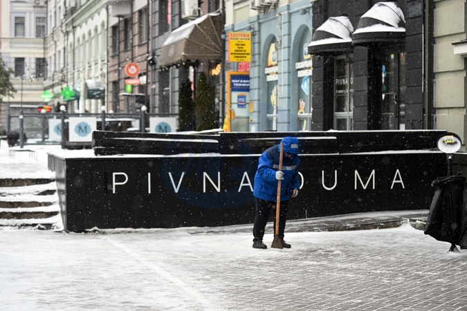 A utility worker breaks ice on the pavement in the Podilskyi district of Kyiv, Ukraine, January 9, 2026., Credit:EVGEN_KOTENKO / Avalon