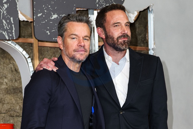 MANHATTAN, NEW YORK CITY, NEW YORK, USA - JANUARY 13: Matt Damon wearing a Luca Faloni suit and Ben Affleck arrive at the New York Premiere Of Netflix's 'The Rip' held at Alice Tully Hall at the Lincoln Center for the Performing Arts on January 13, 2026 in Manhattan, New York City, New York, United States., Credit:Image Press Agency / Avalon