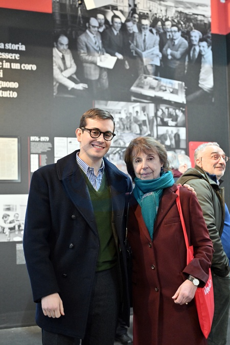 January 14, 2026, Rome. Former Mattatoio. Repubblica 50, Exhibition for the 50th Anniversary of La Repubblica. Pictured: Simone Viola with his aunt Enrica Scalfari., Credit:Maria Laura Antonelli / Avalon