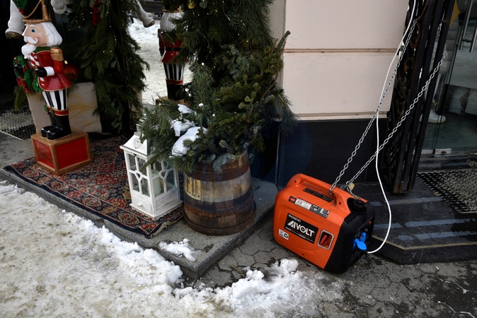 A generator is chained to a pole in one of the central streets, Uzhhorod, Zakarpattia region, Ukraine, January 8, 2026., Credit:IGOR TKACHENKO / Avalon