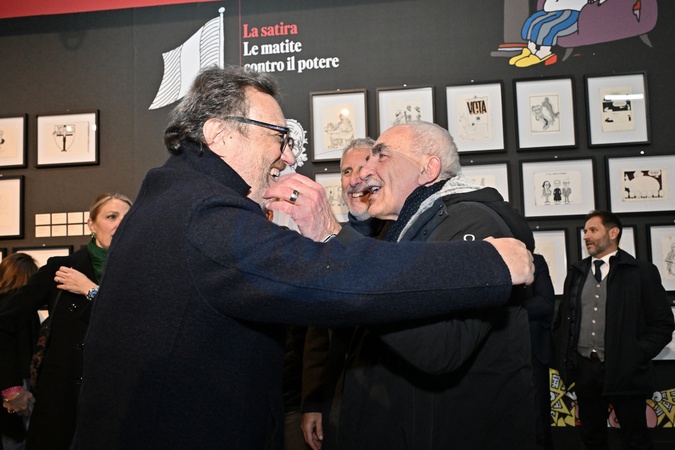 January 14, 2026, Rome. Former Mattatoio. Repubblica 50, Exhibition for the 50th Anniversary of La Repubblica. Pictured: Gino Castaldo with director Mario Orfeo., Credit:Maria Laura Antonelli / Avalon