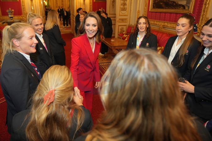Britain's Kate, Princess of Wales, meets members of the England Women's rugby team, at Windsor Castle, Windsor, England, Thursday, Jan. 15, 2026, the team won the 2025 Women's Rugby World Cup., Credit:Kin Cheung / Avalon