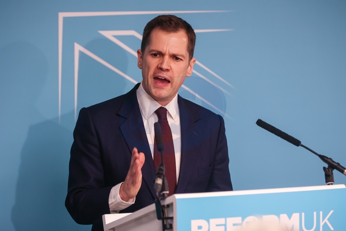 Robert Jenrick MP defects to Reform UK at press conference in London, UK, on 15 January 2026