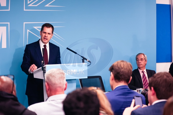Robert Jenrick MP defects to Reform UK at press conference in London, UK, on 15 January 2026