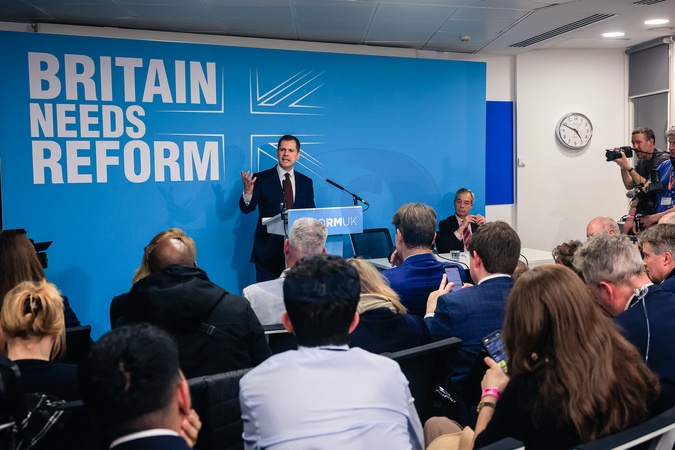 Robert Jenrick MP defects to Reform UK at press conference in London, UK, on 15 January 2026