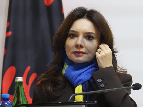Minister of Foreign Affairs of Albania Elisa Spiropali is seen during a joint press conference with her Ukrainian counterpart Andrii Sybiha following talks on bilateral relations, international cooperation, and a shared path toward EU accession in Kyiv, Ukraine, on January 15, 2026, Credit:Pavlo Bahmut / Avalon